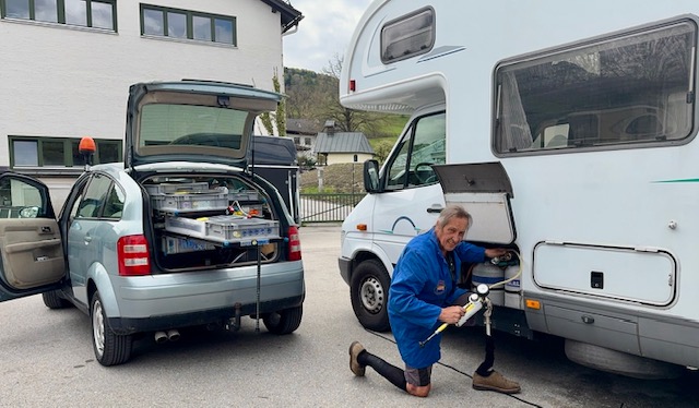 auf dem Anhänger, auf den Camping plätzen, welche wir Betreuen, unterwegs und führe dort die Gasprüfungen, durch. siehe Kalender Ich muss mir dabei Zeit lassen und bleibe deshalb übers Wochenende dort vor Ort, in meinem Camper. Ich hoffe damit Manuel in der Werkstatt zu entlasten. AutoMar, Thalmann 9, 83101 Rohrdorf. (Gleich hinterm Zementwerk) . Termine in der Werkstatt Mo.-Fr. 8-17 oder nach Vereinbarung. 08032-1881441.